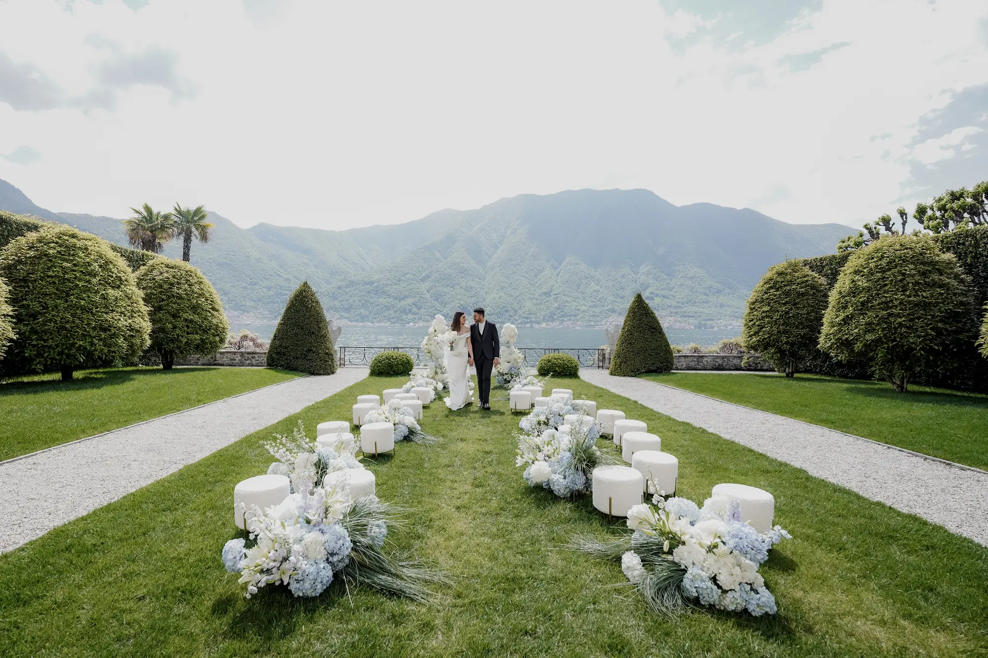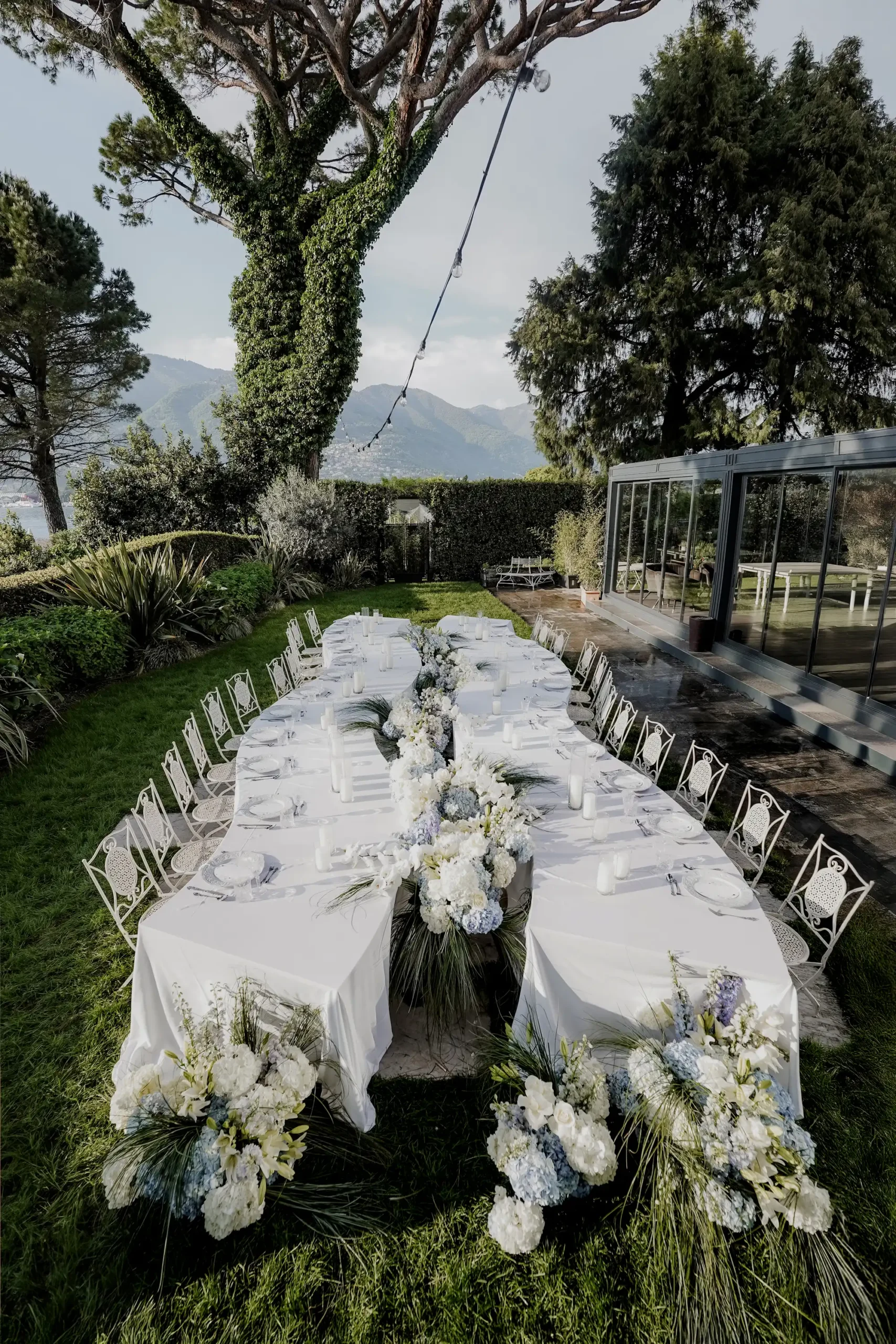 Das Ambiente der Villa Balbiano bot die perfekte Bühne für einen festlichen Empfang. Mit Blick auf den Comer See, umrahmt von prachtvoller Architektur und kunstvoller Dekoration, entstand eine Atmosphäre, die sowohl luxuriös als auch warmherzig wirkte.