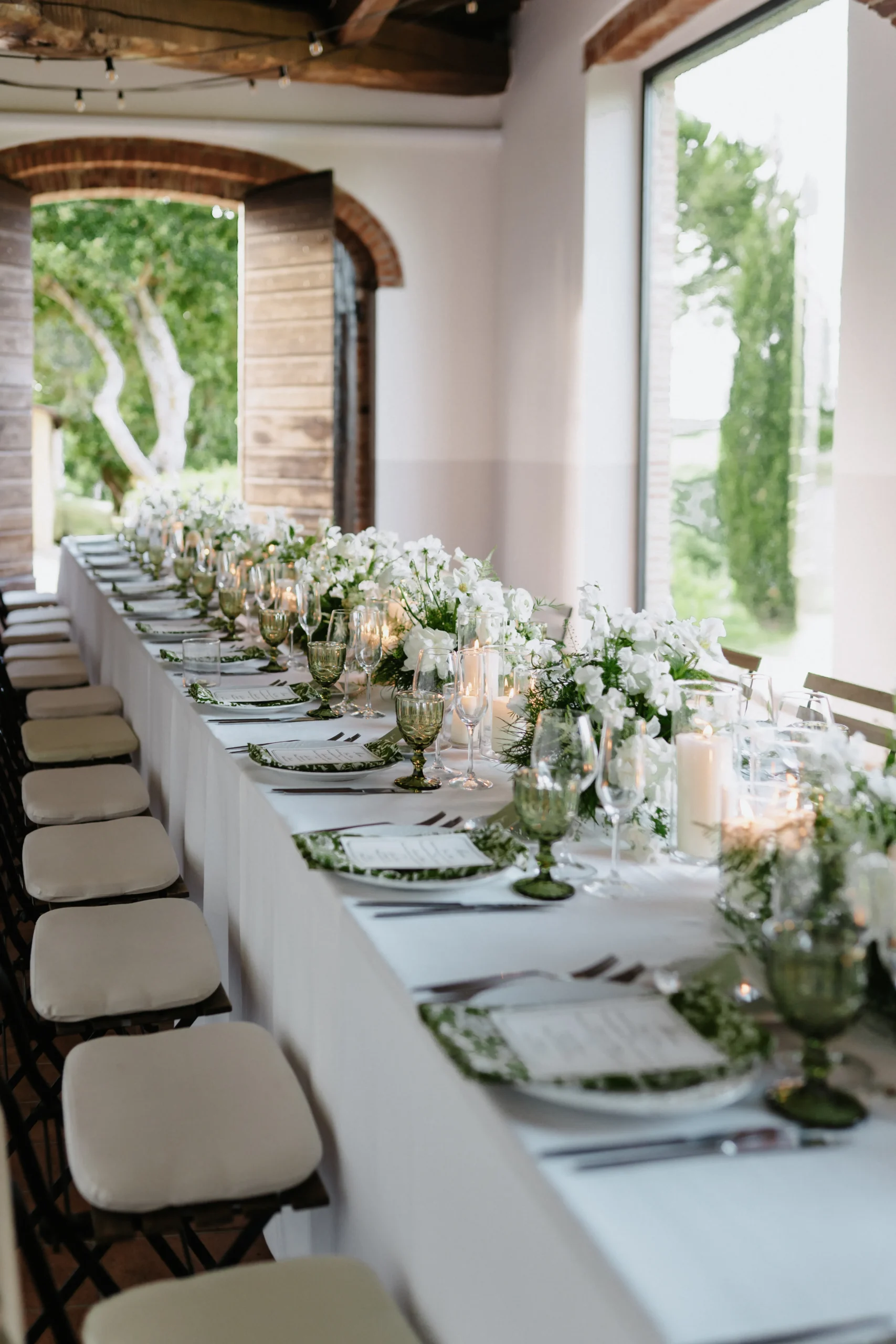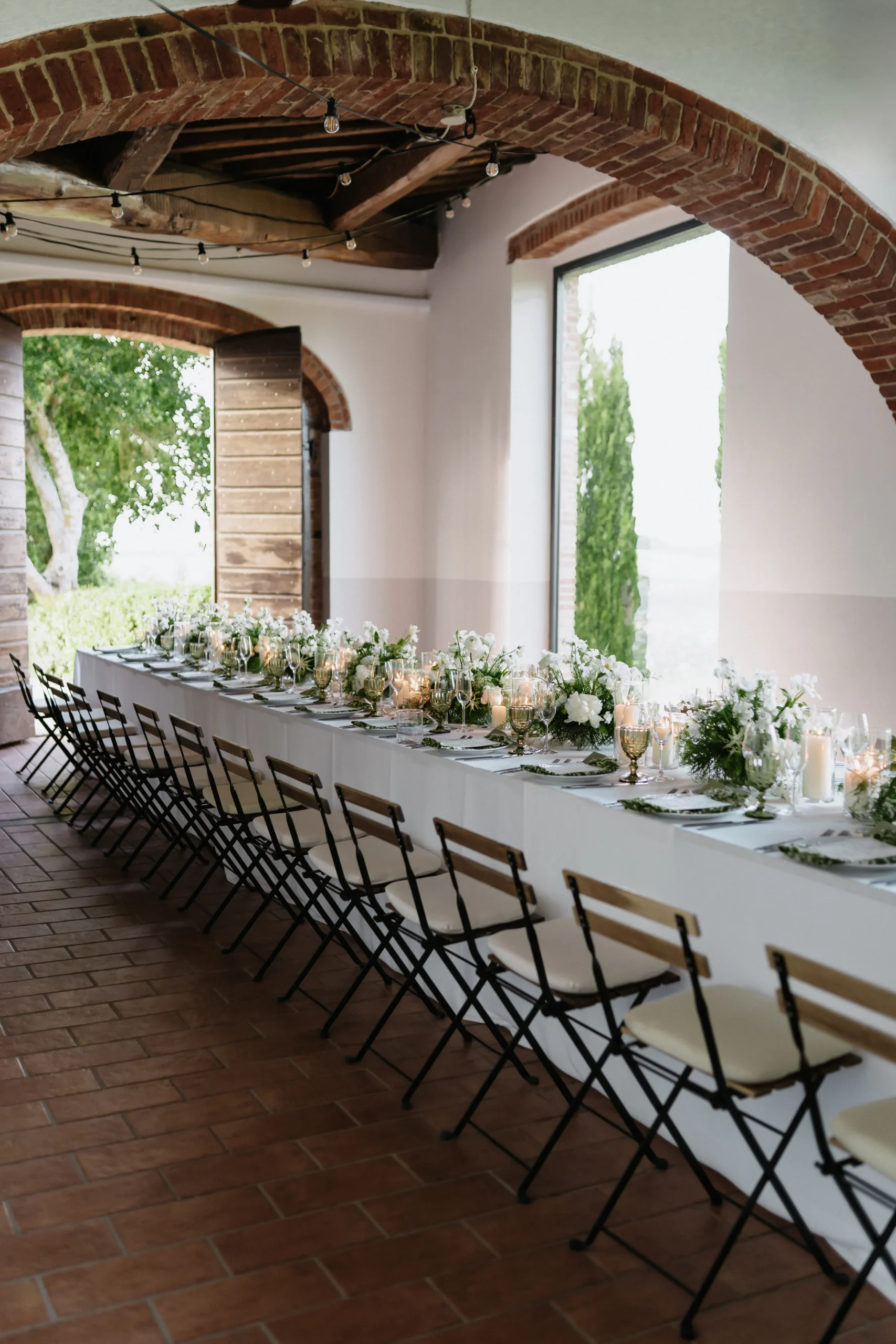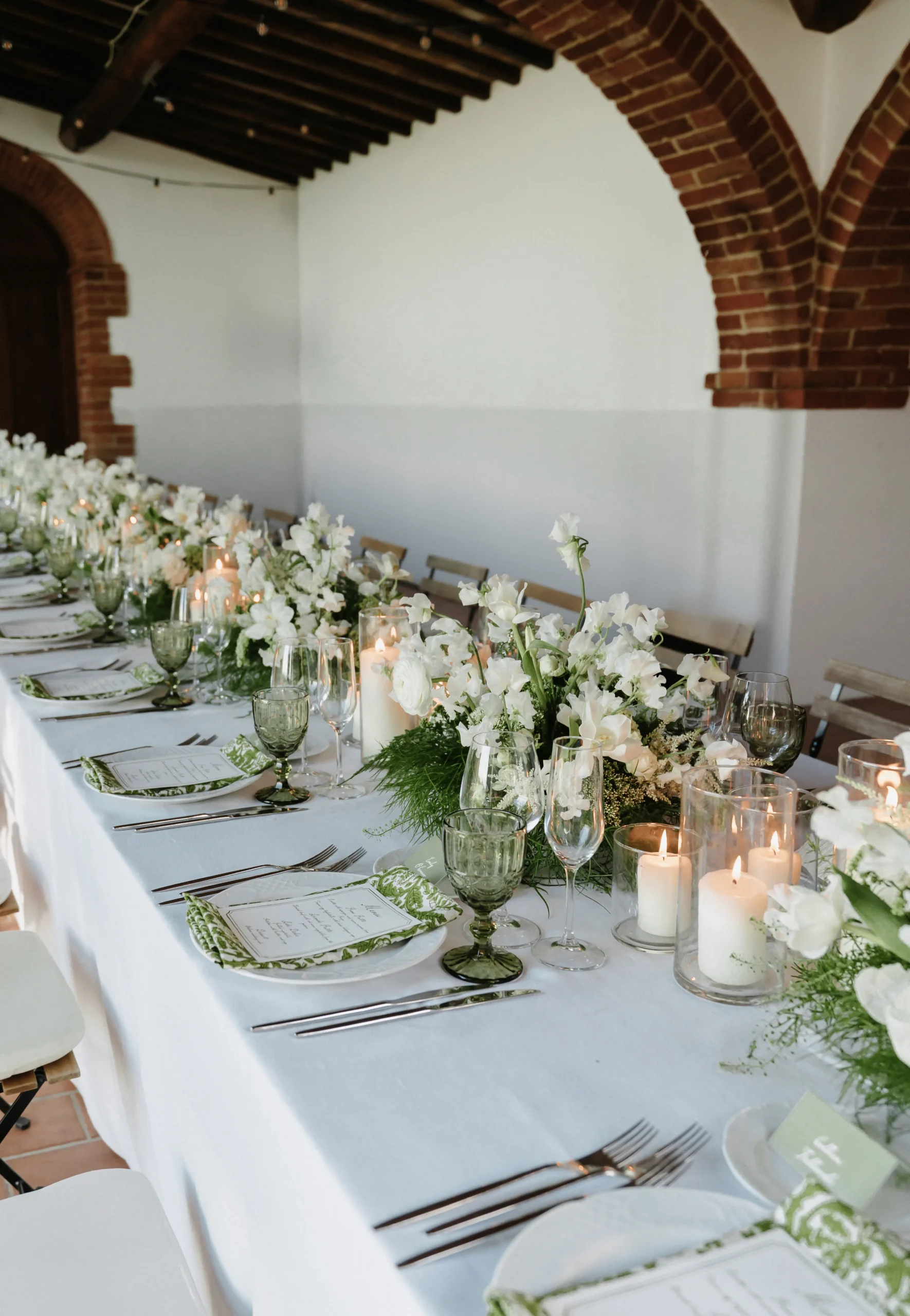 Der Empfang wurde in einer atemberaubenden Szenerie gefeiert, geprägt von mediterranem Charme und stilvoller Dekoration. Von den floralen Akzenten bis zur fein abgestimmten Tischgestaltung griff jedes Element ineinander und schuf eine elegante, zugleich warme Atmosphäre voller festlicher Leichtigkeit.