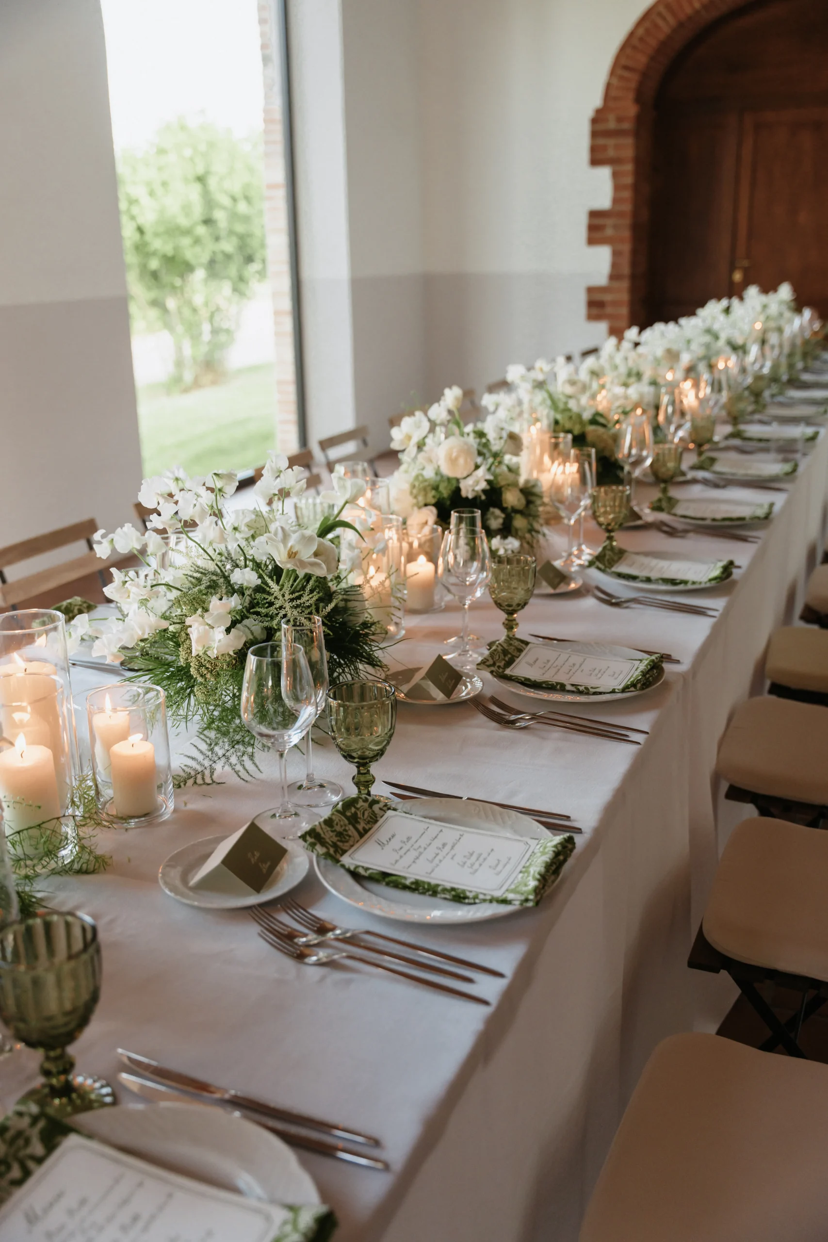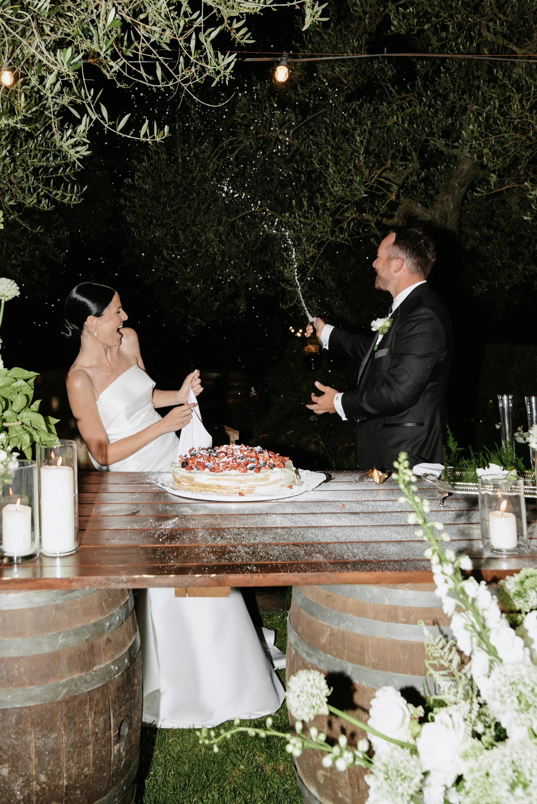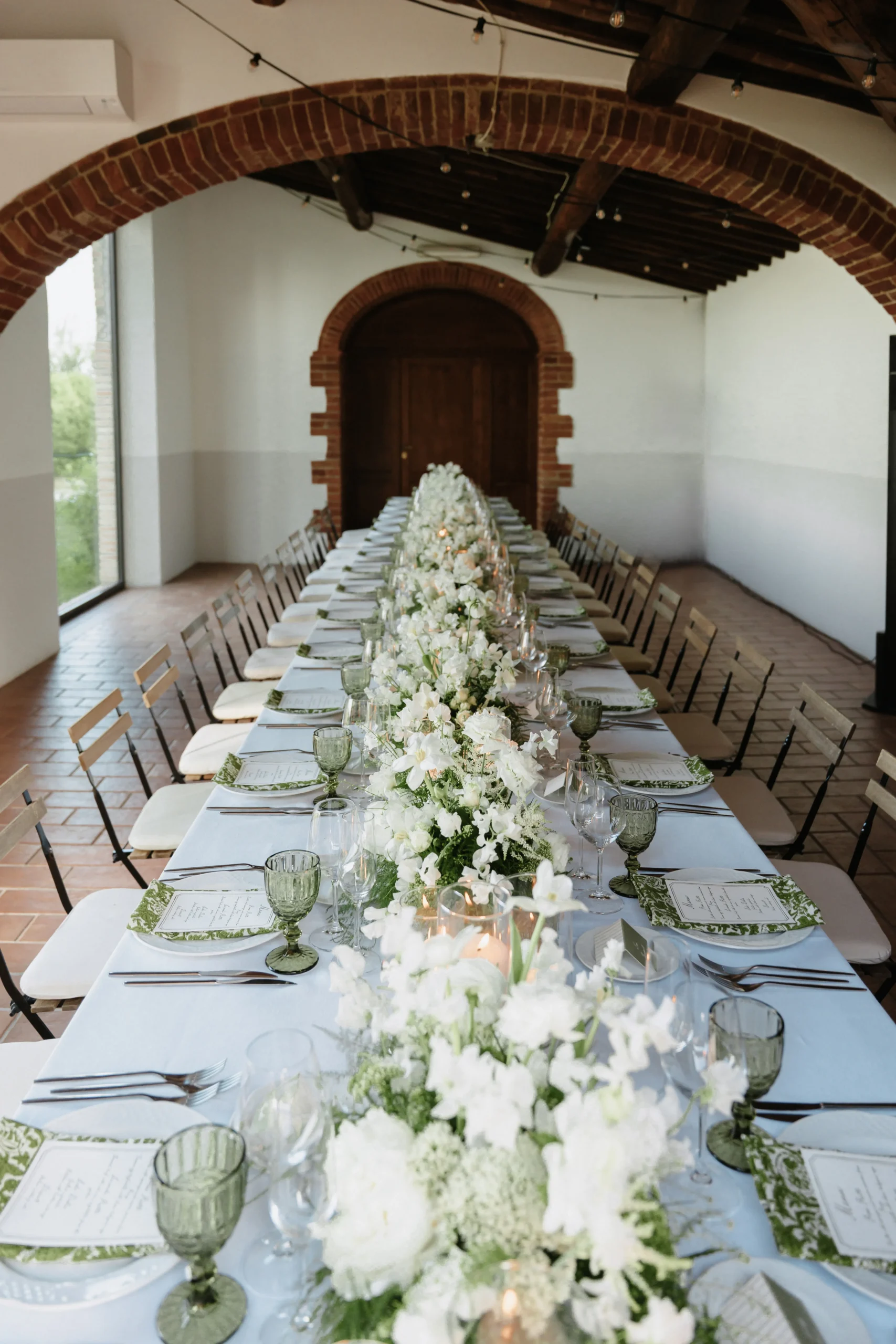 Der Empfang wurde in einer atemberaubenden Szenerie gefeiert, geprägt von mediterranem Charme und stilvoller Dekoration. Von den floralen Akzenten bis zur fein abgestimmten Tischgestaltung griff jedes Element ineinander und schuf eine elegante, zugleich warme Atmosphäre voller festlicher Leichtigkeit.